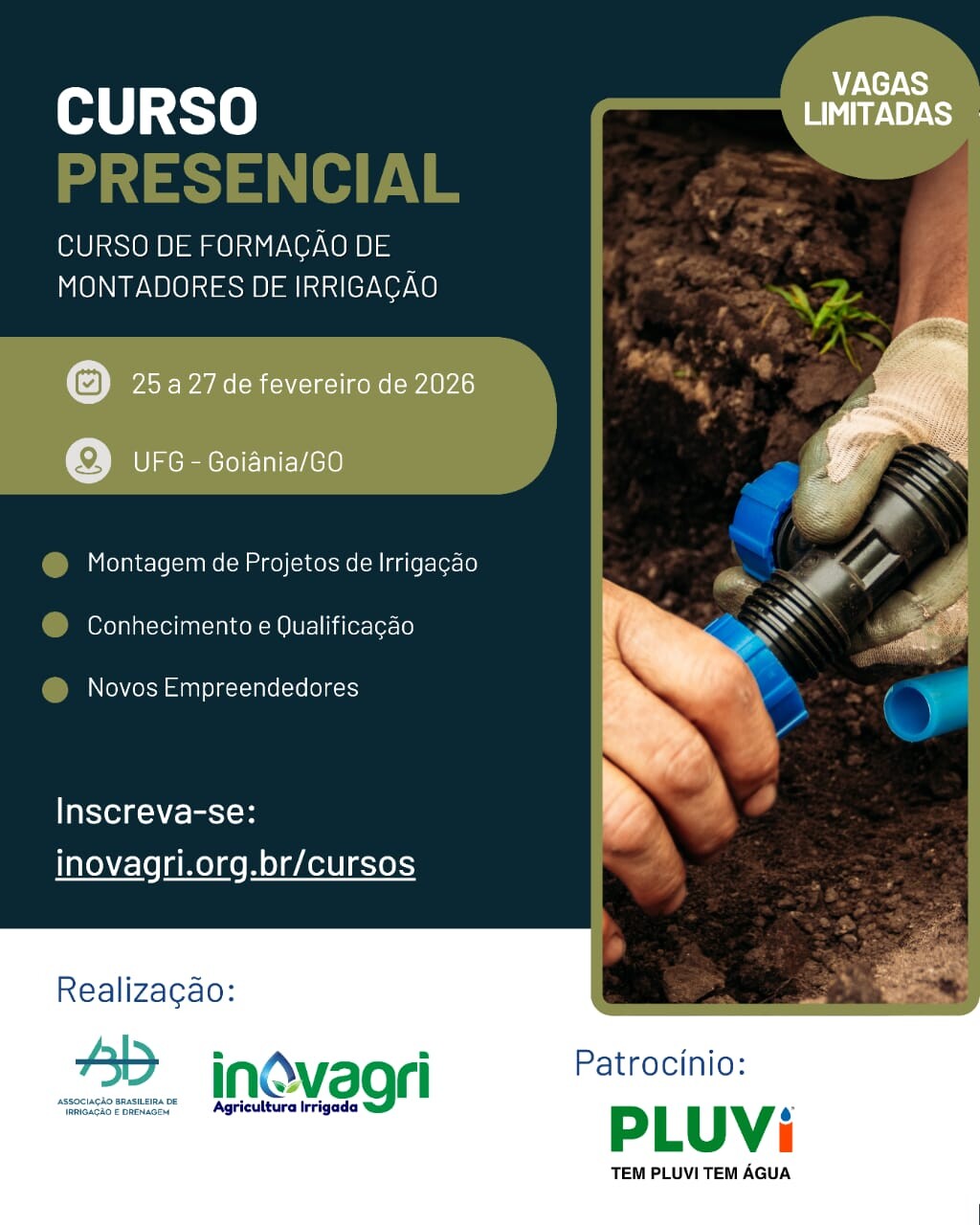 Púbico Alvo: Técnicos agrícolas, estudantes, consultores, profissionais que atuam ou tem interesse em montagem de irrigação.