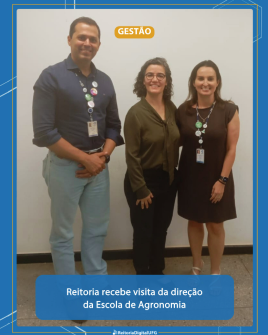 A vice-reitora da UFG, Camila Cardoso Caixeta, recebeu a direção da Escola de Agronomia (EA) no Gabinete da Reitoria na tarde dessa segunda-feira (30/3). O diretor Cláudio Fernando Cardoso e a vice-diretora Francine Neves Calil vieram para a primeira reunião com a atual Reitoria da UFG e trouxeram as principais demandas da EA.